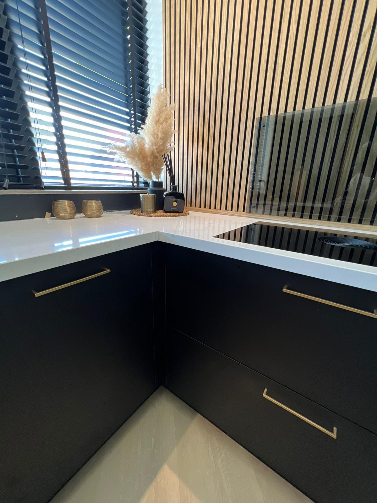 Alles wordt op maat gemaakt door Van Nunen Interieurbouw & Keukens. Wandpanelen om het geluid perfect op te vangen, een volledige wandkast of juist een losse roomdivider. Een gigantische eettafel of een bescheiden tv-meubel. Heb je inspiratie nodig of een goed gesprek voor het juiste advies? Neem contact met ons op, we helpen je graag op weg naar jouw droominterieur.